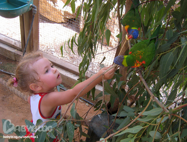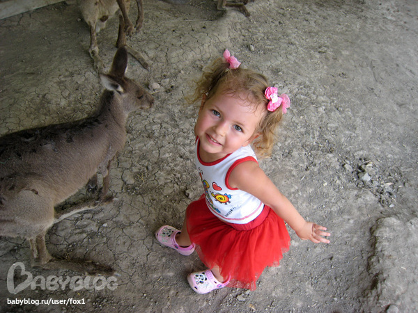как я уже писала, бусина сначала обалдела от восторга и гонялась с дикими криками за кенгурушками по всей территории. потом выдохлась и пошла уже по-человечески знакомиться со зверюшками