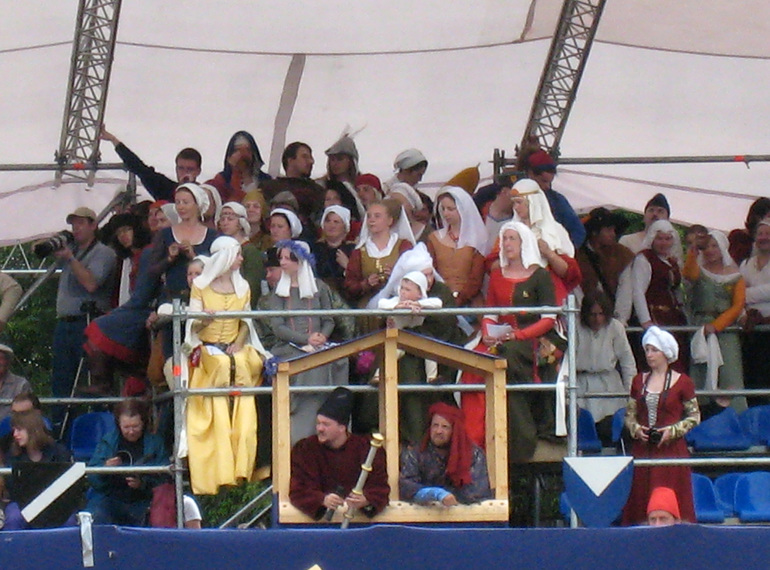 с удовольствием смотрели рыцарский турнир. дамы сидели в шатре на краю длиннющего поля и слали инкогнито платочки самым ловким и сильным рыцарям. рыцари в забралах дрались за эти платки - чем больше платков, тем достойнее ты выглядишь в глазах соперника. но дамы на поверку оказались старыми клюшками - спасибо зуму в камере )))