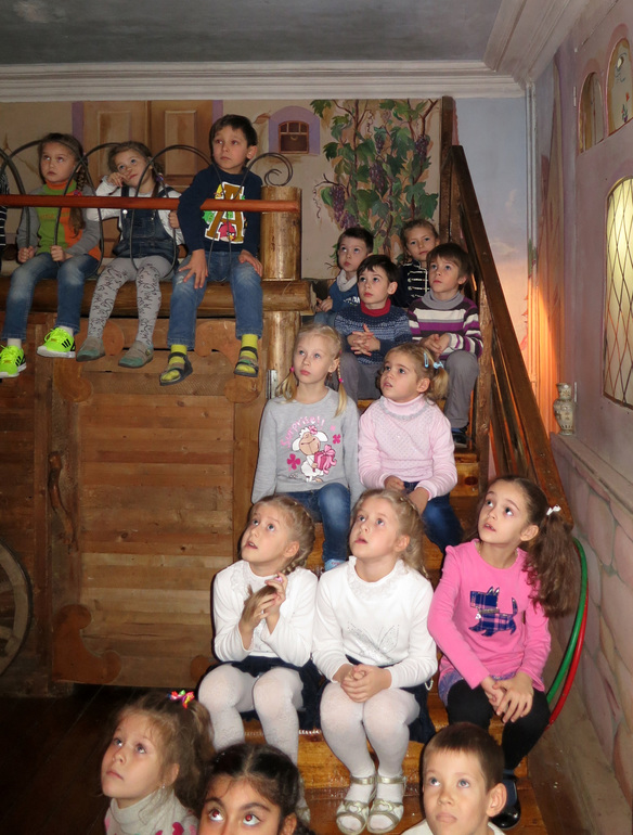 пока дети толкались в темноте, она что-то быстро рассказала. никто не заметил, как уже отворилась потайная дверь в театр кукол