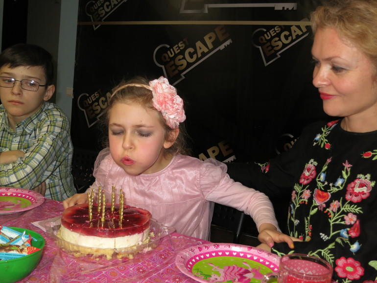 день рождения мы справляли дважды - в костроме и дома.в костроме это был первый день морозов. сразу -20 после нуля. двоюродные братья-сестры были приглашены на квест Тайны фараонов. бусина оказалась самой младшей и письменные шарады и шифры не осилила, на что страшно обиделась. но эмоций от тайных комнат и мумий было много