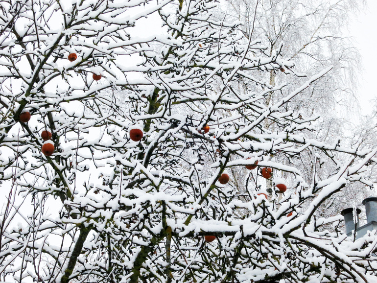 слобода - на другой стороне реки костромки. пока возвращались до моста, увидели вот такие красные яблоки на ветках, занесенные снегом