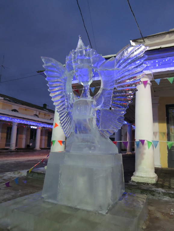 в центре, в красных рядах, успели посмотреть выставку ледяных фигур. на таяла на глазах. до морозов оставался 1 день, но многие фигуры до него не дотянули