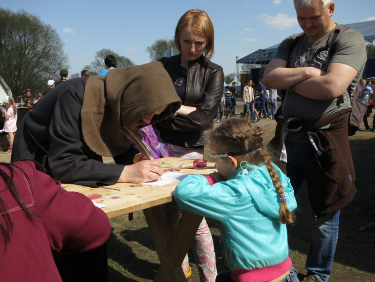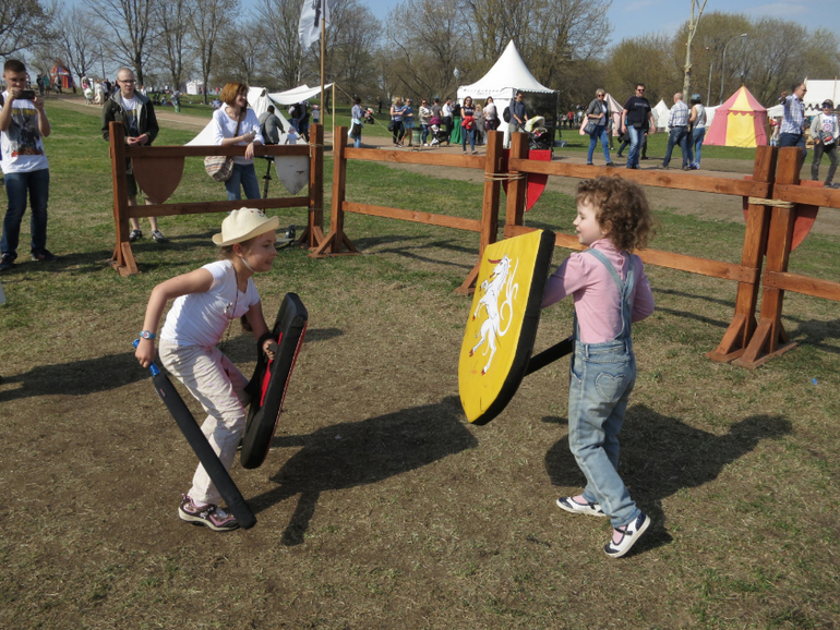 по факту оказалось, что рыцарские бои - платные. аж по 5 тыс!!! а все остальное - для детей: мастер-классы и игры. поэтому племянники просидели почти все время в кафе. зато бусина развлекалась 3 часа нон-стоп.