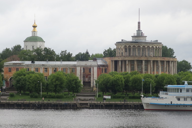 на стрелке волги и реки тверцы чудесное здание-дворец со шпилем. речной вокзал. этот шпиль был первым, что я увидела в окно нашей квартиры утром. думала, дворец 19 века, но нет, сталинский неоклассицизм. в зум разглядела, в каком оно состоянии, и огорчилась