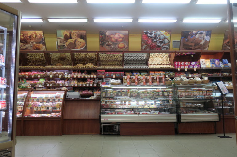 а внутри витрины моего детства. именно так - горками и ярусами - выкладывали печенинки и пироженки в магазинах 40 лет назад ))