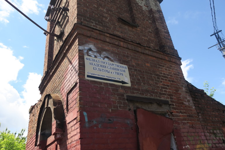 зато попался удивительный тупик с одинокой башней. где-то тут притаилась академия славянской культуры