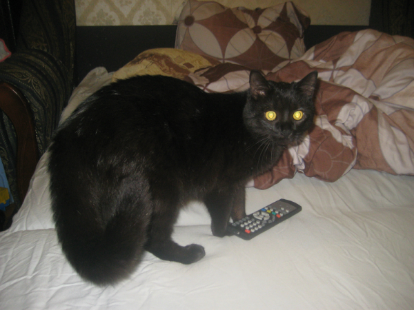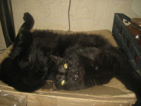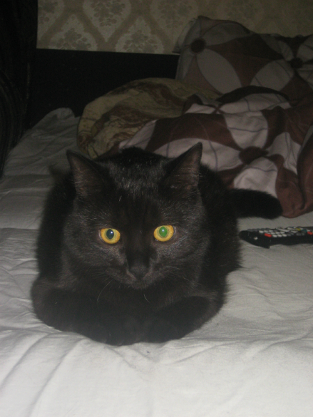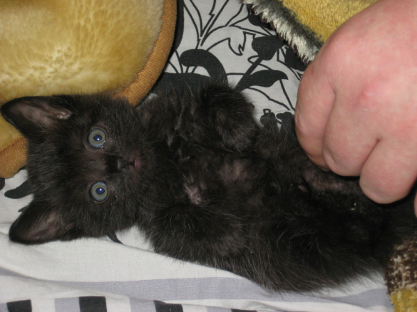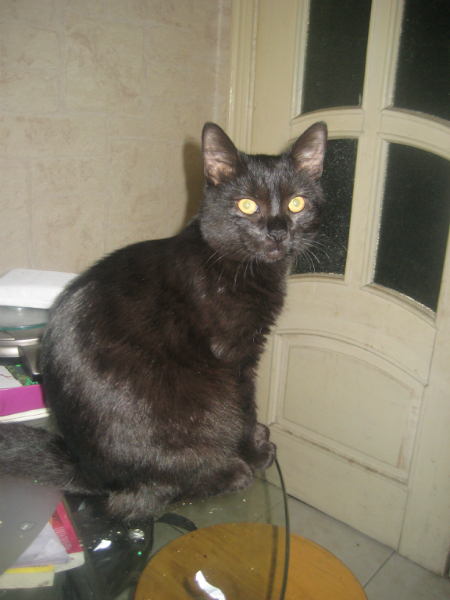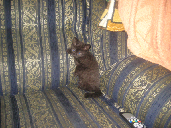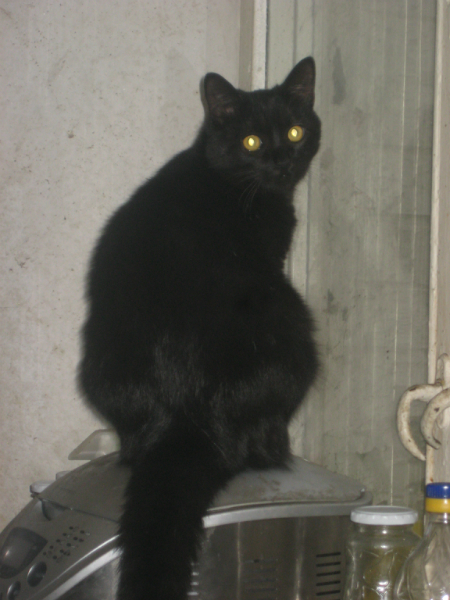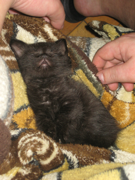 не, он не совсем черный - а темно-темно коричневый, цвета горького шоколада... и от мамаши достались светлые волоски местами, типа седина)