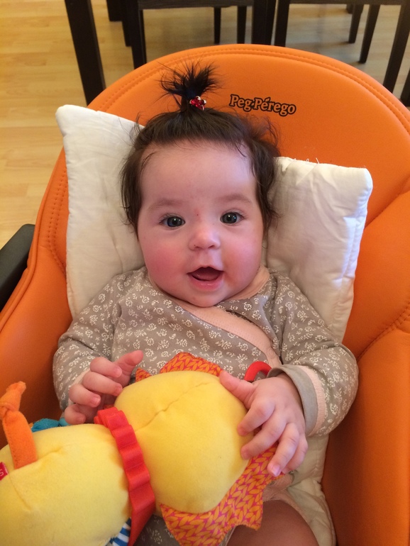 Доченьке 4 месяца, начали делать первые хвостики ))