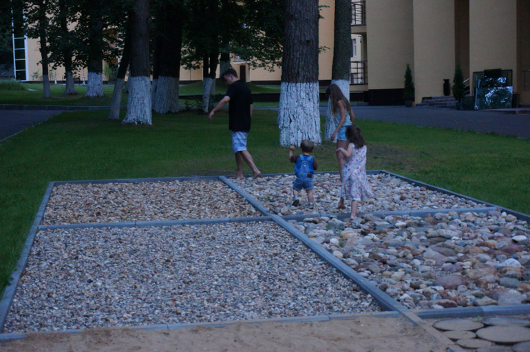 На территории отеля есть тропа "здоровья", на каждом кубе земли разного рода камни, при хождении босиком стимулируются разные нервные окончания.... короче, такой кайф наступить в песок после всех этих мелких и крупных булыжников: