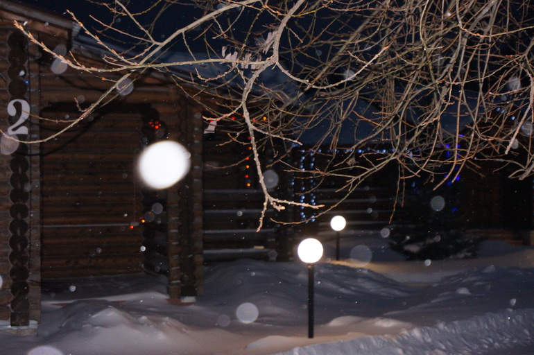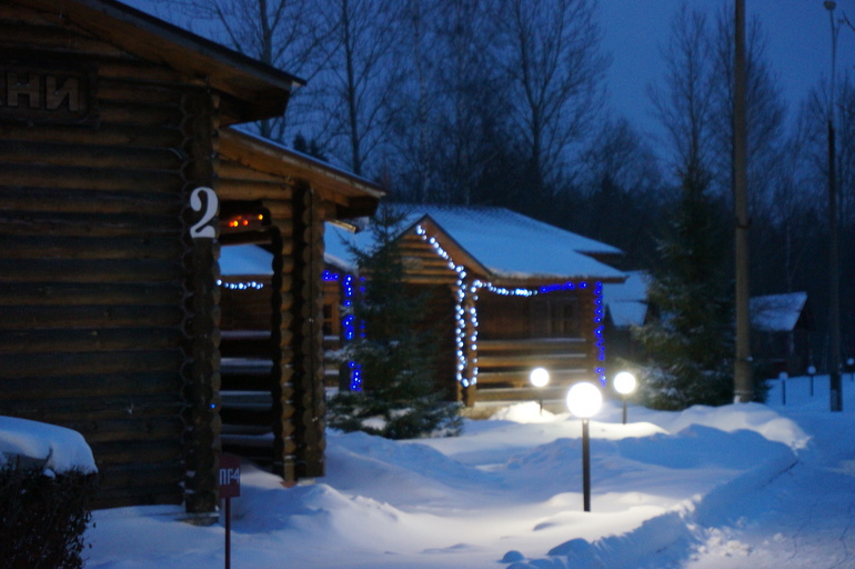 А вечером красота неописуемая: все в огоньках, сугробах из белоснежного снега и очень волшебно, не удалось передать всего с помощью камеры: