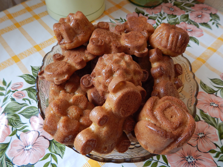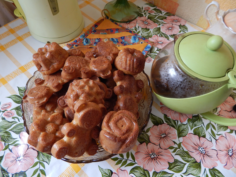 Давненько я ничего не пекла.Ну вот сегодня захотелось приготовить что-нибудь свое без "Е" к чайку.Купила еще осенью силиконовые формочки кексиков и мишек ,но так и ничего не пекла..Вот и наконец порадовала я своих и соседских детишек