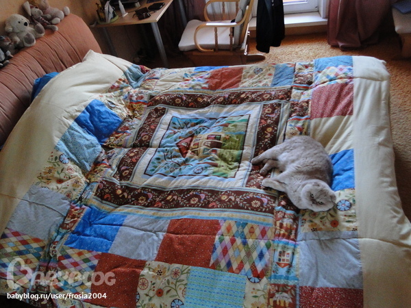 ой если бы сразу правильно ткань расчитала))))то ещё докупать пришлось )))))так в общем скажу что основные детали я сшила за 3-4 вечера,стегала его вечер после работы,закрывала края тоже вечер))))) так что около недели в общем если делать день зва днем,но мне так не удалось т.к. сломалась швейная машинка поэтому смогла все доделать в течении месяца к сожалению(((( но чтобы меньше гемора было советую купить спец лапку для швейной машинки дело пойдет гораздо быстрее и для стежки с утяжелителем))))