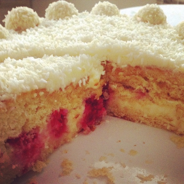 В заключении, обсыпать торт со всех сторон кокосовой стружкой. -