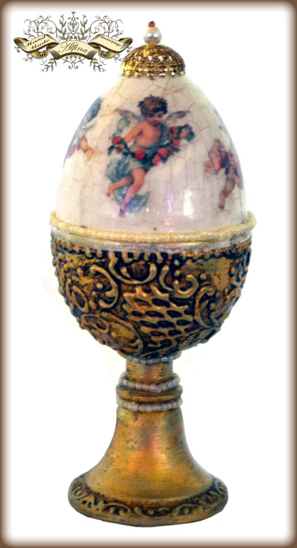 Предмет исполнен в технике декупаж, с применением приемов состаривания (кракелюр), декор стразами Swarovsky.