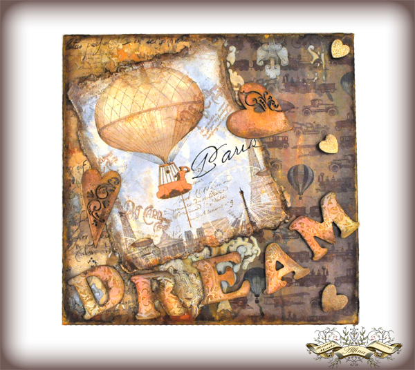 Исполнена в технике Mixed Media по мотивам выступления Натальи Жуковой в летней сессии Международного университета декупажа.