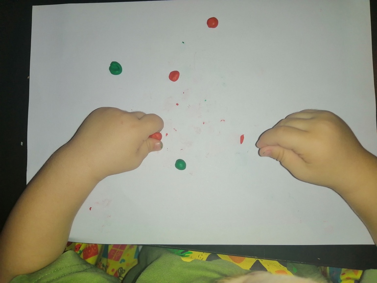 Уже неделю ведём активный диалог с ответами "да", "нет" и "не знаю". Отлично понимает вопросы, отвечает да или не-не-не или наю, соответственно. Сопровождает всё кивком головы, мотанием головы в стороны и пожиманием плечами. Прогрессирует звукоподражание. Чётко произносит "ав-ав" и указывает пальцем на собаку,"ау" - на кошку, "буу" - на корову, "пти" - на 🐦, "пи" - на мышку, "ка-ка" - на утку, "ы" - на медведя. Фырчит носиком как ёжик, показывает, как кусает волчок за бочок. Кормит игрушки, укачивает их "бай-бай", чистит ушки ватными палочками, чётко показывает части тела, особенно нравится показывать пальчики и пупок😊Увлечённо играет с машинами, катает их по препятствиям, которые строит сам из ортопедической коврика и других игрушек, загоняет за диван, но говорит, что он не причастен к этому 😀Играет в мини-баскетбол пластиковыми мячиками, строит из конструктора что-то (иногда пытается построить башню из всех деталей). Убирает за собой игрушки по просьбе, помогает мыть полы (есть своя тряпочка для этих целей, намочит её водой и трёт пол рядом со мной), хорошо протирает пыль там, где уже знает, выбрасывает мусор в ведро (знает, что нужно идти в ванную, включить свет и бросить в ведро, на всё показывает пальчиком). Помогает разбирать пакеты из магазина, интересуется процессом готовки, сам залазит на табурет и рядом наблюдает. Выучил наименования кухонных принадлежностей и техники, покажет пальцем, если попросить показать. Моется сам губочкой, правда, только живот и ножки, но важен сам факт, что самостоятельно. Знает, где лежит мыло и где взять гель для душа. Научился включать и выключать не только смеситель, но и душ. Если видит закрытую дверь, то кричит "дей", подходит и стучит кулачком. На улице показывает дорожные знаки по просьбе, которые похожи на треугольник или круг или квадрат. Дома также показывает предметы, схожие с этими формами, любит свои шторы со звёздочками. Различает цвета машин на улице. Показывает деревья с листочками и без них. Обожает заниматься по карточкам Домана, безошибочно показывает каждый предмет, действие, животное, продукт питания или явление. Самая удивительная карточка для Марка - "снег", потому что его пока ещё не видели вживую. Выучили наименования одежды и какую одежду на какую часть тела нужно надевать. Отличает одежду и обувь всех членов семьи. Любит рисовать красками и ватными палочками (недавно рисовали осеннее дерево, понравилось делать точки палочками с разными цветами), лепить из пластилина (сам катает кружочки, а потом надавливает на них и делает "блинчики"), рисовать карандашами трехгранными (держит их правильно в руке), пробовали рисовать фломастерами, очень понравилось то, что можно снимать и одевать обратно колпачок.