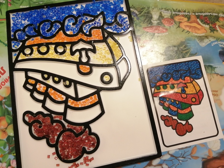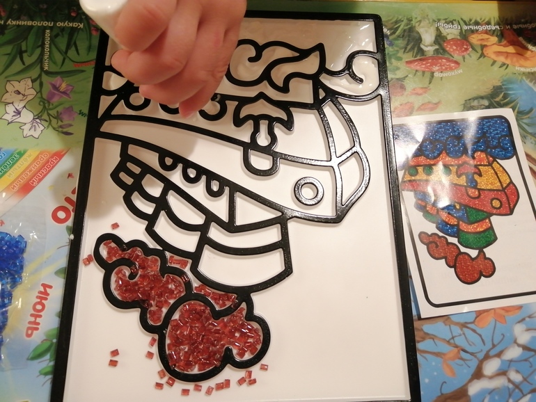 Сегодня освоил технику фрески из стеклянных камней. До этого пробовал работать также с песком, получилось неплохо, но забыли запечатлеть на память