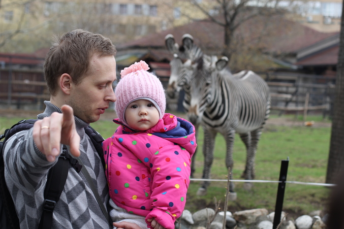 День рождения прошел насыщенно. Праздничные мероприятия мы проводить начали накануне в субботу 27-го апреля. Несмотря на заверения некоторых знакомых, что типа рано нам в год, отправились в зоопарк. И получилось здорово! Даше очень понравился жираф, зебра и лошадка, которую кормили морковкой. С интересом смотрела она на мечущегося по клетке медведя и гагакающих гусей. Радостно выкрикивала приветствие и махала рукой медведю гризли, который, кстати, тоже обратил внимание на Дашу и некоторые время смотрел на нее изумленно и вопрошающе. Ну не ожидал он такой реакции от этого мааленького яркого бурундучка, видимо:)