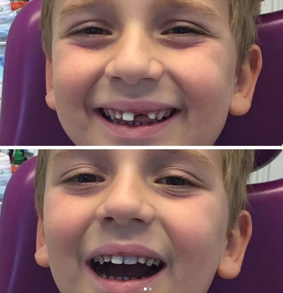 до_и_послеИногда, когда молочный зуб уже не спасти, доктора прибегают к помощи замещающих пластинок.
