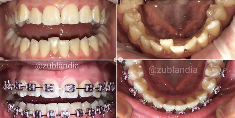 до_и_послеНа фото вы видите превосходную работу нашего ортодонта по исправлению прикуса современными брекет-системами.