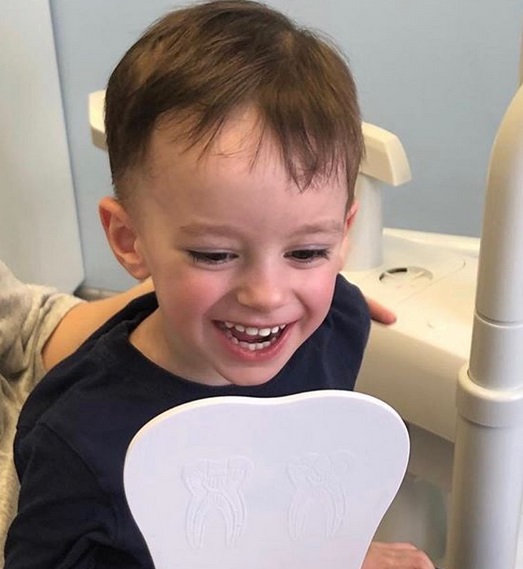Мы успели заснять его настоящие эмоции, когда доктор показала в зеркало его новые зубки. Посмотрите как мальчик рад и доволен