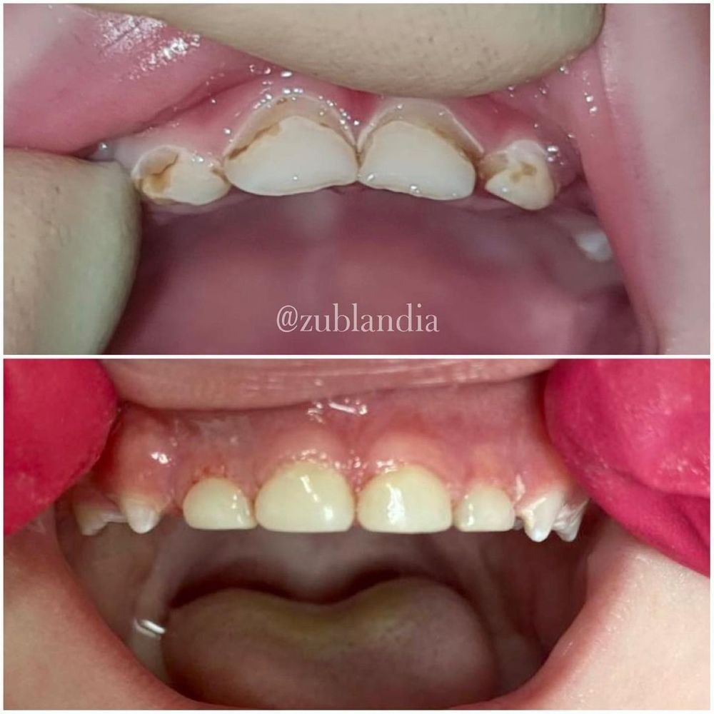 Так было и в этом случае! Пациенту на фото всего 1,5 года, он попал к нам уже с четырьмя пульпитами. 😣Лечением занималась врач-стоматолог Яриновская Алина Вадимовна, ей потребовалось всего два приема, чтобы справиться со всеми проблемами.🙌