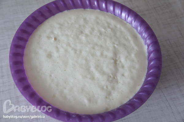 вот так опара подошла чрез 30 минут, мы ее осаждаем деревянной ложкой .