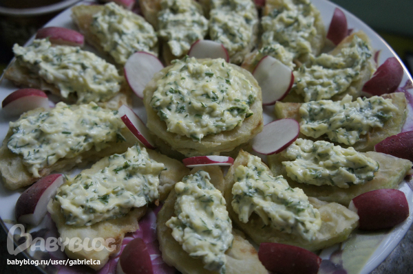 дальше готовим сырную прослойку - трем сыр, белок и чеснок на мелкой терке, потом добавляем много мелко резанной зелени и майонез . Выкладываем сырную массу на кружки ( в моем случае полукружки) кабачков