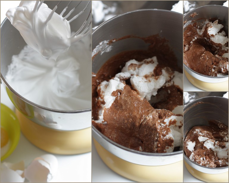 Взбить белок с оставшимся сахаром и вмешать в тесто.