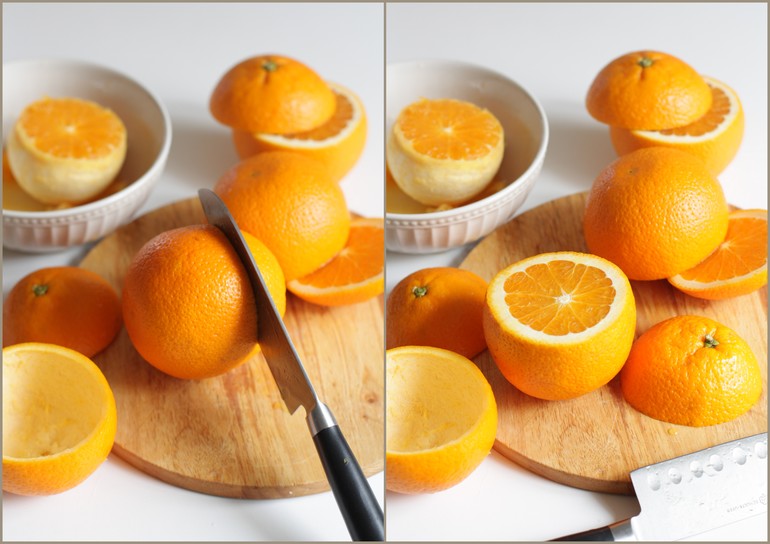 Потом запускаем пальчики и аккуратно по круговой доходим до дна. В принципе совсем несложно, нужно только не торопиться, чтоб не порвать кожуру, поэтому я и рекомендую брать толстокорые апельсины, к тому же они меньше деформируются при выпечке.