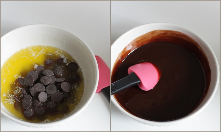 Масло растопить в микро, высыпать туда шоколад, вымешать до однородности, остудить