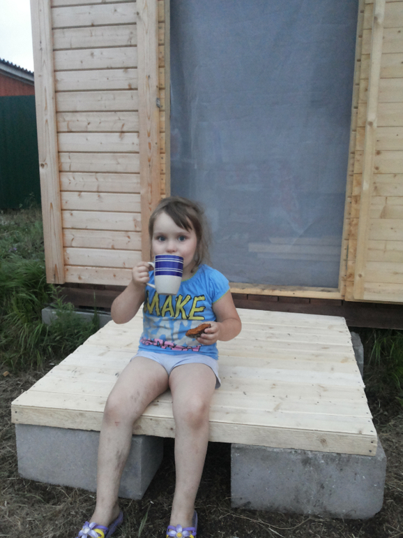 А к вечеру мне пришла в голову прекрасная идея: сколотить что-то типа крылечка, что я и сделала(удостоившись от "туземцев" приглашения в их бригаду"))) Без работы, короче, мне явно не остаться на старости лет)))