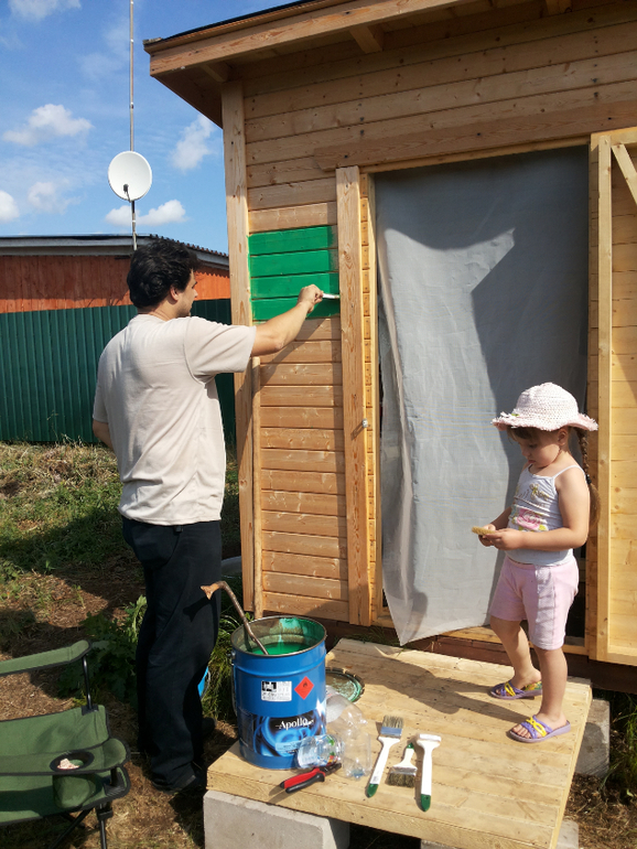 Сам процесс покраски домика заснимать было, к сожалению, некому(а Лизочке дать телефон я не догадалась, хотя она умеет!) Поэтому у меня есть фото начала и окончания процесса)))