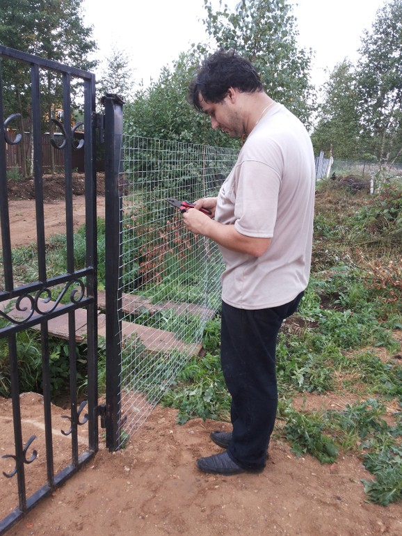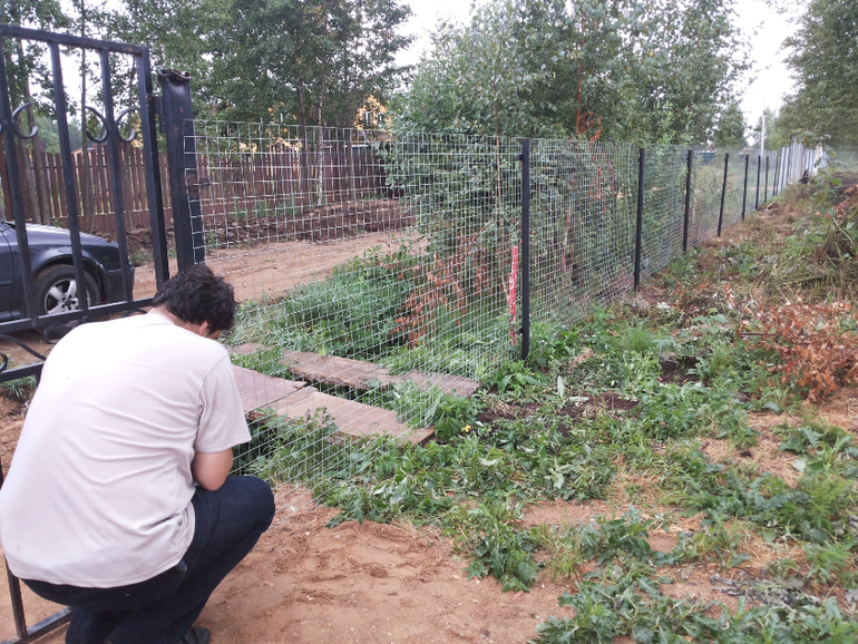 Урра!!! У нас теперь есть забор!!! Сеткой - так как хотим, чтоб, когда засадим участок по периметру кустами сирени и жасмина, чтоб создавалась иллюзия, что в качестве забора - только кусты...