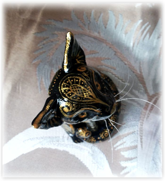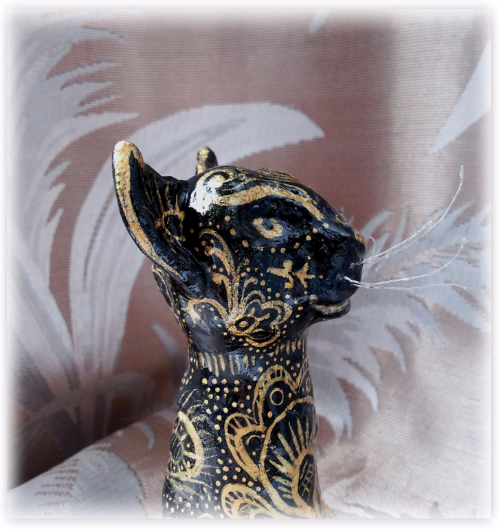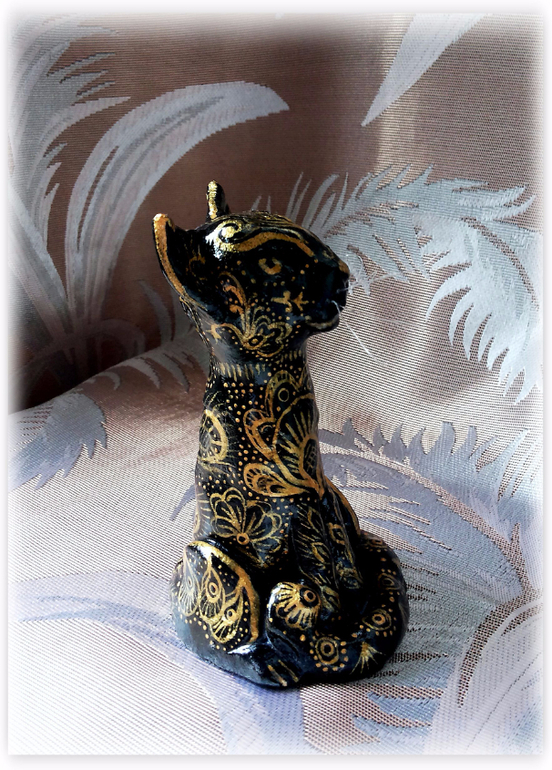 Итак, первым будет Черный кот из соленого теста, расписанный акрилом.