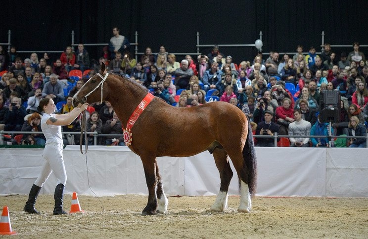 Потом, немного полюбовавшись на коней, мы пошли в главный манеж, где шли соревнования на звание Абсолютного Чемпиона породы, в данном случае - породы владимирский тяжеловоз. Бооооже, КАКИЕ они красавцы! Могучие, сильные, невероятно лучистые, с густой гривой-хвостом и очень красивой походкой... глаз не отвести!!!! И рядом с ними девушки, их выводящие - все, как на подбор, тоненькие и хрупкие. Может быть, так нарочно подобраны?