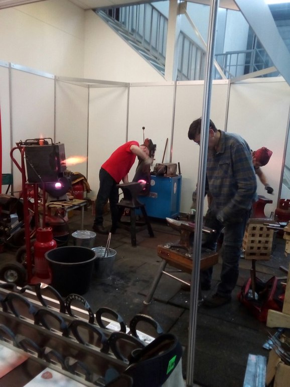 В маленьком манежике работали белоснежного красавца, напротив - Настоящая кузница, где ковались, к восторгу зрителей, настоящие подковы и элементы сбруи, все это подробнейшим образом комментировалось кузнецом.