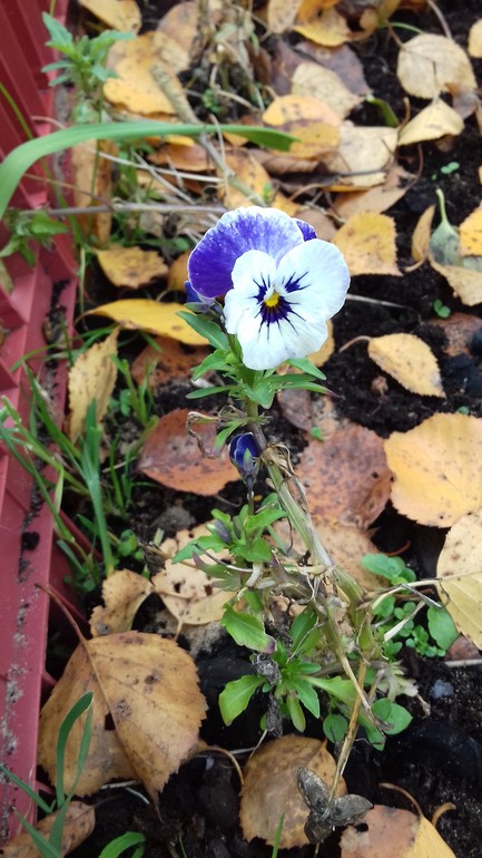 Дачное)Вот так приезжаешь, всего одним днем, в любимую Усадьбу - окончательно ее закрыть на зиму, вокруг промозгло и холодно, все зачахло, листья опавшие на увядшей клумбе... и вдруг - цветок! Назло осени, назло опавшему и увядшему - цветок. Цветет!