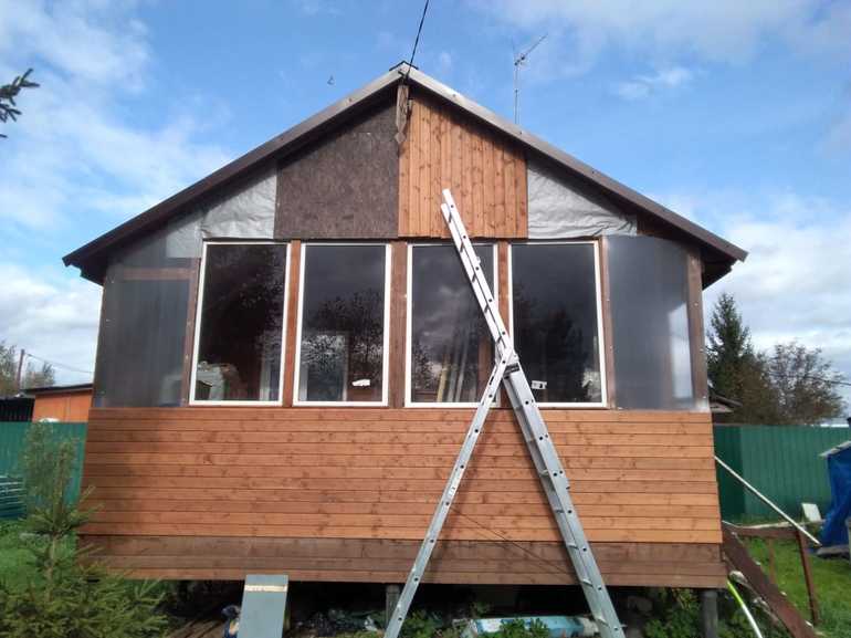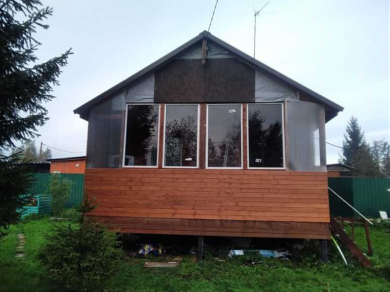 По периметру пойдут резные наличники чтоб скрыть огрехи и неровности швы, да и просто для красоты. Боковины - те, где сейчас поликарбонат прибит - тоже будут зашиты вагонкой. Просто ее сейчас нет, покупать надо.