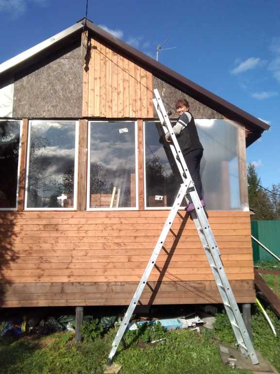 Вчера же приезд наш начался с обшивания вагонкой уже прибитых щитов(это я так оттягивала момент с подъемом оставшихся частей ОСБ наверх... зря, кстати! Там уже небольшие куски и они не тяжелые).