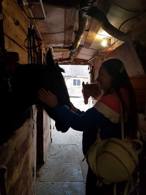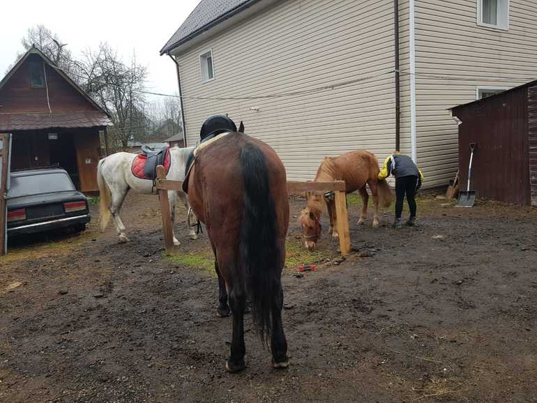 Итак, конюшню нашли на просторах тырнета, тут еще удачно получилось - я впервые воспользовалась купонами и, скажу, довольно удачное начало! Еще и ехать получилось до конюшни очень удобно, хотя и не близко: по Савеловскому направлению, станция Катуар, а от нее - на такси минут 10. Вот только погода подкачала - холодно было. Ну да ладно.