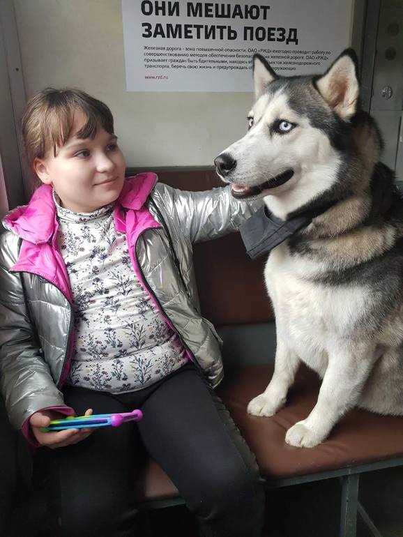 Пока ехали, в электричке у нас был такой вот симпатичный и общительный попутчик)))