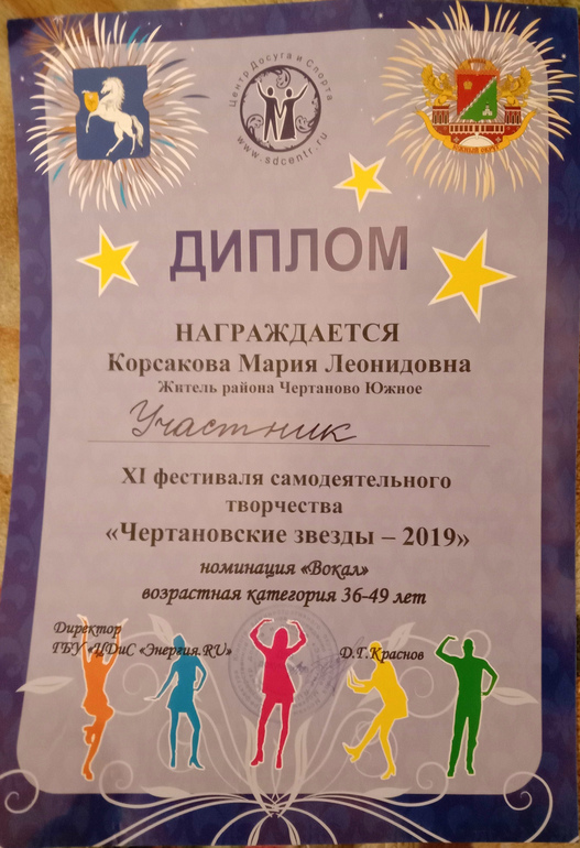 Вот и мое отделение, я - вторым нУмером в нем... "На сцену приглашается житель Чертаново Южное, Корсакова Мария Леонидовна, с авторской песней "Серенада"!