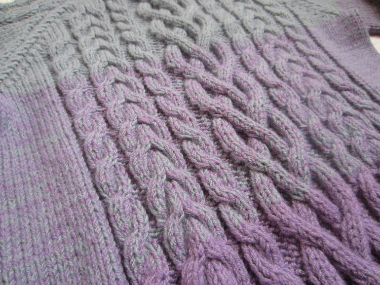 Из 100% мериноса экстрафайн + нитка супер кидмохера для пущего тепла и пушистости, спицы 2.5 и 3. Узор - две "косы-медальон" без разделительных изнаночных дорожек.