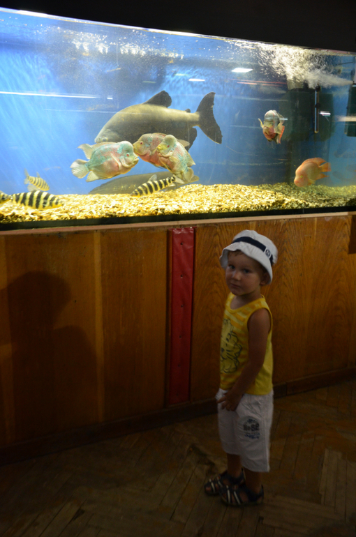 Путешествия. Интересные места в городе.Нам конечно теперь есть с чем сравнивать и дельфинарий и аквариум. После анталийского аквариума евпаторийский показался таким мягко говоря никаким. Но ведь дело не в масштабах аквариумов и супер современном ремонте, для нас самое главное, чтобы ребенок был доволен! Здание аквариума очень ветхое и древнее. На входе сидит пожилой мужчина, приглашает на просмотр. Взрослый билет 300руб, Дима бесплатно. Мы были там одни:).