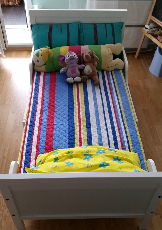 Дима. Развитие от 3х до 4хПочти 3,5 года я спала с сыном. Вначале мне было так удобно, ребенок маленький, я долго кормила грудью, бесконечно и безрежимно, в том числе и ночью. Потом отучение от подгузников, ночные вставания, вроде бы я тоже в эти моменты должна быть рядом, чтобы не прокараулить лужу. Уже этим летом не было никаких препятствий, чтобы разъехаться по разным комнатам, но меня все равно что-то останавливало. И вот месяца три назад я поняла, что ребенок-то мой уже давно готов!!! Перед новым годом купили новую кровать, детскую. Диван в эти выходные отвезли на дачу. Ну вот и все! Да здравствует новая жизнь и новая кровать:). Сегодня с дедом с самого утра собирали ее. Засыпать первое время все равно будим вместе, сказки на ночь ведь никто не отменял