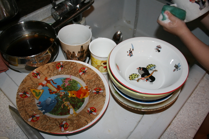 Вот такой у меня помощник растет! Моет посуду постоянно. Расстраевается, если я не разрешаю. Моет хорошо, чисто.