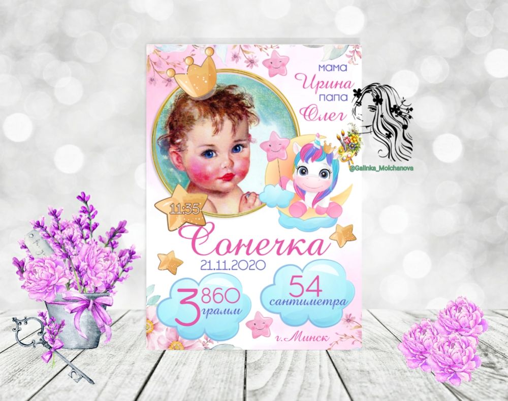 Метрика будет приятным подарком на рождение малыша, выписку из роддома ,на крестины и любые детские праздники.