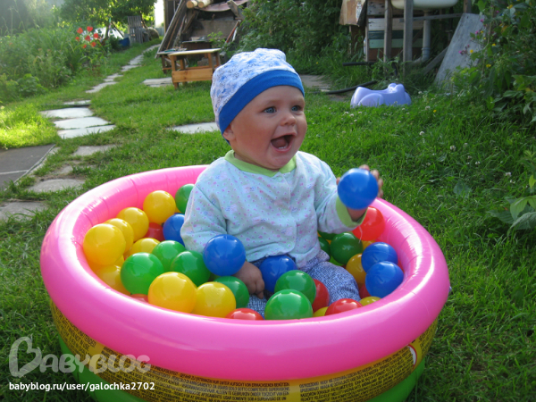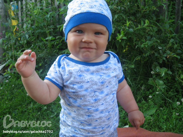Сегодня вернулись с дачи, жили там 2 недели. Детишек до года в нашем маленьком кооперативе аж 10. Веселее, чем в городе гулять. За это время у нас вылезло 2 зуба, стали около минуты стоять без опоры и бегаем за ручки. Ну а дальше просто много фото: