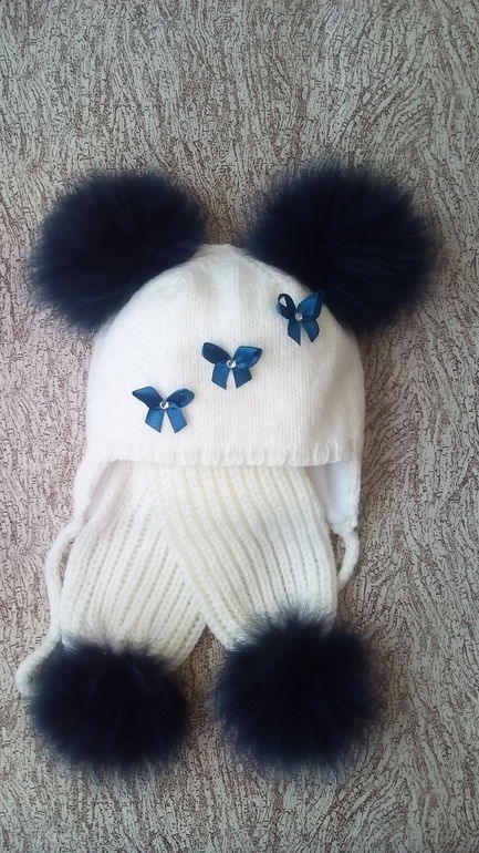Девочки, срочно пристраиваю 2 комплекта( заказчица пропала). Связаны из полушерсти (не колется), подклад флисовый, помпоны песец, енот, съемные. Белый на ОГ 49-50, бордовый на ОГ 51-52. Цена 1300+почта
